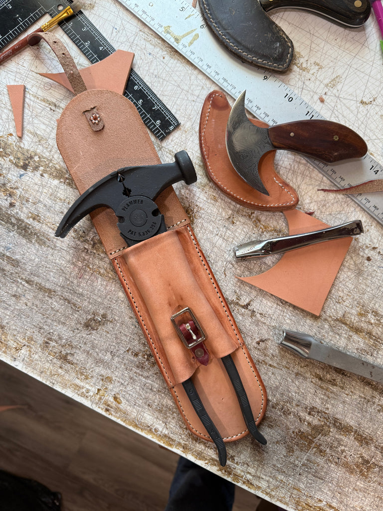 Leather scabbard to keep your Plammer fencing pliers handy. Latigo closure. Holes to tie to your saddle, or wherever you keep them. Optional sleeve to slide over your back billet on your saddle. Made in Wickenburg, Arizona. These are made to order and there may be a delay in shipping.
